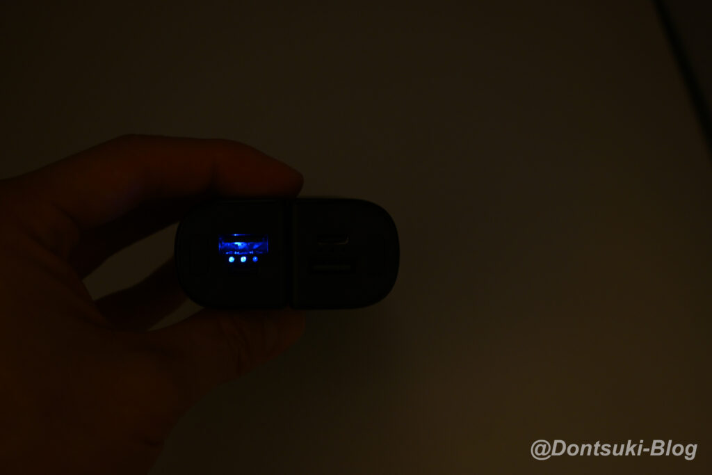 どんちゃ充電したい端末に接続すると自動的に充電が始まることは、地味ですが助かる機能です!後から「充電が始まっていなかった」ことに気がついたときのショックは大きいですからね。