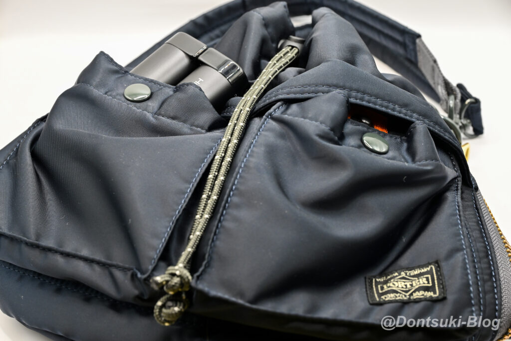 コンパクトな充電式カイロは、最近流行りの巾着バッグの外ポケットにも収まるため、