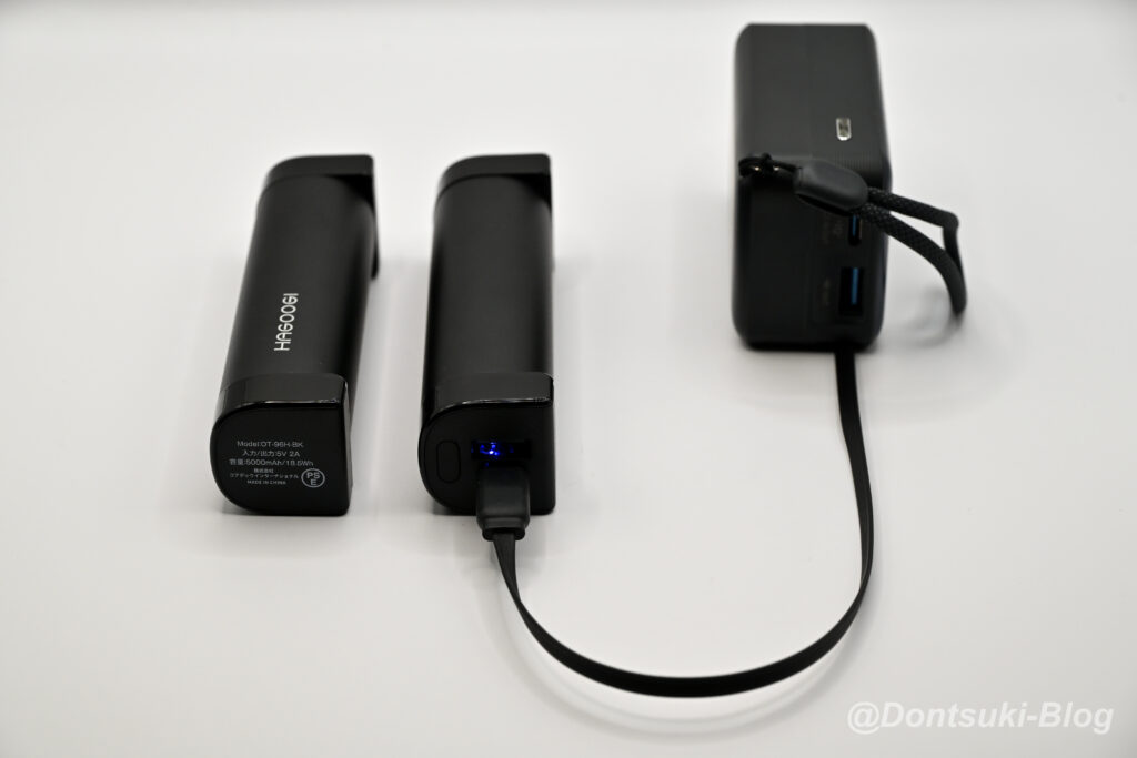 ただし、1本5,000mAhの容量を備えているため、私のような通勤や家で数十分単位でちょこちょこ使用する場合は、週に1-2回充電するだけで使用することができています。