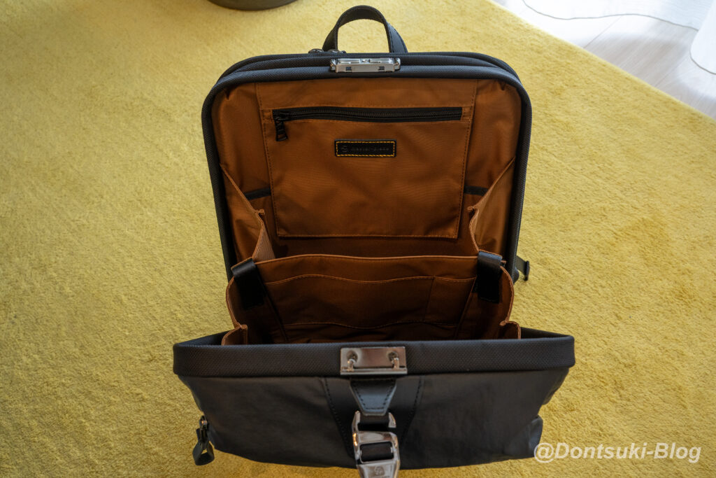 容量10Lと聞くと一見少なくて不安に感じると思いますが、ダレス錠でデッドスペースなく収納できるため、日々のビジネスツール+αであれば十分な容量です。