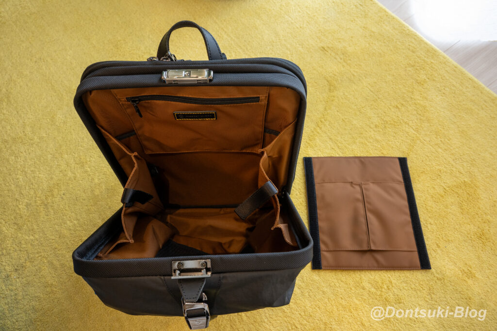 バック中央の中仕切りは着脱可能になっています。