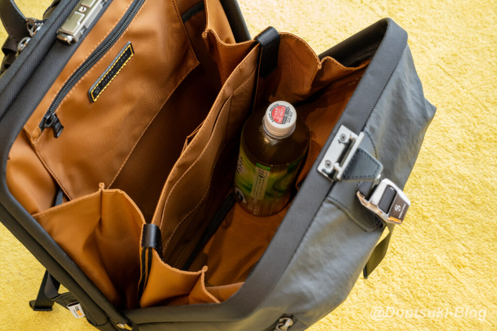 ただし、ダレス錠により1秒でメインエリアを開閉できるため、このバックにとって外ポケットはあまり重要ではないように感じています。